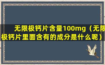 无限极(Infinitus)是一家中国的保健品公司,其产品线包括多种健康食品和营养补充品。如果您提到的“无限极钙片含量100mg”是指无限极生产的某款钙补充剂,那么这里的“100mg”通常指的是每片钙片中钙元素的含量。
