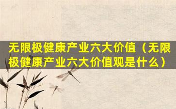 无限极(Infinitus)是一家专注于中草药健康产品的公司,隶属于香港李锦记集团。无限极强调其健康产业的六大价值观,这些价值观是其企业文化和经营理念的核心。以下是无限极健康产业的六大价值观: