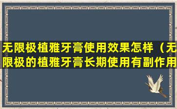 无限极(Infinitus)是一家中国的健康产品公司,其产品包括植雅牙膏。关于植雅牙膏长期使用的副作用,目前没有公开的科学研究或官方声明指出其存在长期使用的副作用。