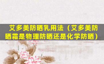 "艾多美防晒乳"是一款防晒产品,使用方法通常如下: