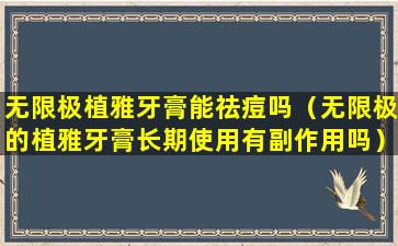 如果有人声称无限极植雅牙膏能祛痘,这可能是个别用户的个人体验,但并不代表普遍有效,也不应作为治疗痤疮的依据。使用不当的护肤品或药物治疗痤疮可能会导致皮肤刺激、过敏或其他不良反应。