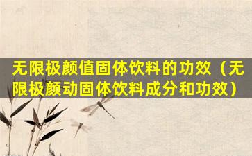 无限极(Infinitus)是一家中国的健康产品公司,它生产和销售各种健康食品、个人护理产品和家居用品。关于“无限极颜值固体饮料”的功效,由于我无法访问最新的数据,我无法提供具体的产品信息。通常,这类产品可能会宣称有助于美容养颜、改善肤色、提供营养等功效。