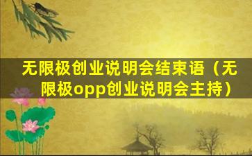 无限极创业说明会结束语通常会会议内容,强调无限极的创业机会和优势,同时鼓励与会者抓住机遇,加入无限极的创业行列。以下是一个可能的结束语示例: