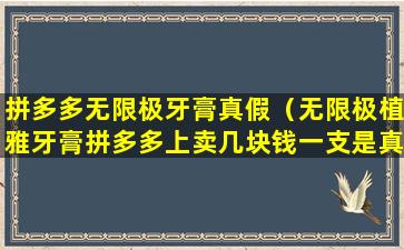 拼多多是中国的一家大型电商平台,上面有众多商家销售各种商品,包括牙膏。关于“无限极牙膏”的真假,这取决于具体的商家和商品。拼多多平台本身会对商家进行一定的审核,但仍然可能存在一些假冒伪劣商品。