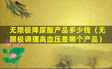 无限极(Infinitus)是一家中国的保健品公司,提供多种健康产品,包括针对不同健康问题的产品。关于“降尿酸产品”,无限极可能有一系列产品声称可以帮助调节尿酸水平,但具体产品的名称、成分、价格和效果需要根据最新的产品目录或官方网站信息来确定。