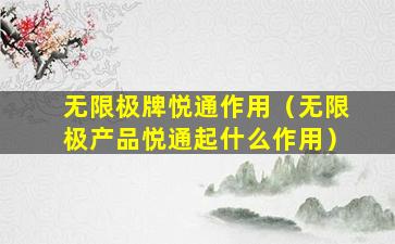 无限极(Infinitus)是一家中国的健康产品公司,隶属于李锦记健康产品集团。无限极的产品线涵盖了营养补充品、个人护理品、家居护理品等多个领域。关于“悦通”这一产品,由于信息不足,我无法提供具体的作用描述。如果“悦通”是无限极的一款产品,它可能是针对特定健康需求设计的,比如改善消化、促进血液循环、增强免疫力等。