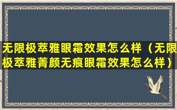 无限极(Infinitus)是中国的一个健康产品品牌,隶属于李锦记健康产品集团。萃雅是无限极旗下的一个护肤品牌,其产品包括眼霜等护肤品。关于萃雅眼霜的效果,由于个体差异和使用习惯的不同,不同用户可能会有不同的体验。
