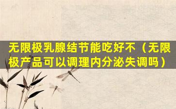 无限极是一家中国的保健品公司,其产品主要以中草药为基础,声称能够帮助改善健康状况。关于乳腺结节是否能够通过食用无限极产品得到治愈,需要谨慎对待。