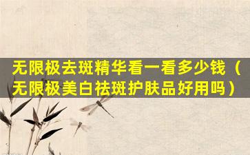 无限极(Infinitus)是一家中国的健康产品公司,提供各种保健品和美容产品。关于无限极的去斑精华产品,由于产品线可能会有更新,具体的价格和产品信息可能会有所变化。
