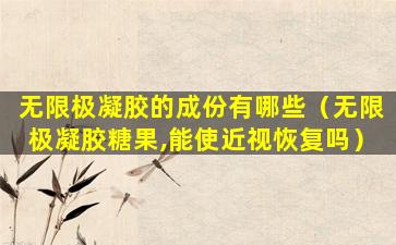 关于无限极凝胶糖果是否能治疗近视,目前没有科学证据表明任何食品或保健品能够治愈近视。近视是一种常见的视力问题,通常是由于眼球轴过长或者角膜和晶状体的屈光力过强导致的。治疗近视通常需要通过佩戴眼镜、隐形眼镜、进行视力矫正手术(如LASIK或ICL手术)等方式。