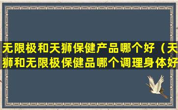 无限极(Infinitus)和天狮(Lion & Globe)都是中国的保健品品牌,它们提供多种健康产品,包括营养补充品、个人护理产品等。选择哪个品牌的产品更好,取决于个人的需求、偏好以及对产品的信任度。