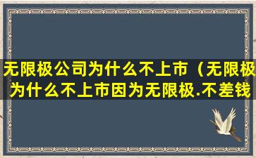 无限极(Infinitus)是一家中国的保健品公司,隶属于香港李锦记集团。关于无限极为什么不上市的问题,这通常涉及到公司的战略决策、财务状况、市场环境、管理层的意愿等多方面因素。以下是一些可能的原因: