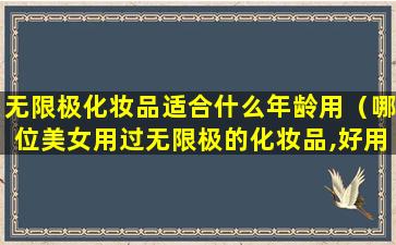无限极(Infinitus)是一家中国的健康产品公司,提供包括化妆品在内的多种产品。无限极的化妆品通常设计为适合不同年龄段的人群使用,但具体适合哪个年龄段,需要根据产品的具体成分、功效以及目标用户群体来判断。