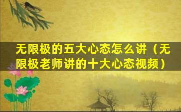 关于“无限极老师讲的十大心态视频”,我无法提供具体的视频内容,因为这可能涉及到版权和知识产权的问题。无限极是一家知名的健康产品公司,他们可能会在其官方渠道或授权的平台上分享有关健康、心态等方面的教育内容。