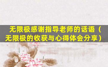 无限极是一家中国的直销公司,主要从事健康产品的销售。在直销行业中,指导老师通常指的是那些在销售和团队建设方面有经验的资深销售人员,他们负责培训和指导新加入的销售代表。如果你想要表达对指导老师的感谢,以下是一些可能的话语: