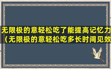 关于“无限极意轻松”是否能提高记忆力,首先需要明确“无限极意轻松”是什么产品。如果它是一种健康食品或补充剂,其效果通常会因人而异,并且需要有科学研究支持其宣称的效果。