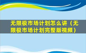 关于“无限极市场计划完整版视频”,我们无法提供具体内容,因为这可能涉及到商业机密和版权问题。无限极是一家知名的健康产品公司,其市场计划可能包含公司的战略规划、市场定位、产品推广策略等敏感信息。