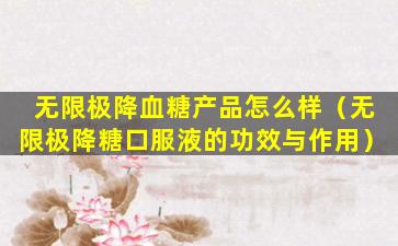 关于无限极的降血糖产品,如果您想了解其效果,可以查看产品的成分、用户评价以及是否有相关的科学研究支持。但是,这些信息可能不足以评估产品的实际效果,因为每个人的体质和反应都是不同的。