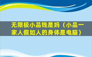 您提到的“无限极小品钱是妈”可能是指某个与无限极公司相关的小品或者段子,其中涉及到了“钱是妈”这样的说法。无限极是一家中国的直销公司,主要销售健康产品。在网络文化中,有时会有一些幽默或者讽刺的小品、段子出现,用以娱乐大众或者表达某种观点。