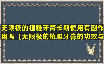 无限极(Infinitus)是一家中国的健康产品公司,其产品包括植雅牙膏。关于植雅牙膏长期使用的副作用,目前没有公开的科学研究或官方声明指出其长期使用会有副作用。任何产品长期使用都可能存在个体差异和潜在风险,因此建议在使用任何产品时,尤其是口腔护理产品,应遵循产品说明书上的指导,并注意以下几点: