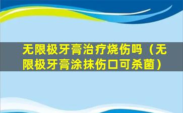 无限极牙膏不是用于治疗烧伤的产品,正确的做法是根据烧伤的严重程度采取相应的急救措施,并及时寻求医疗帮助。