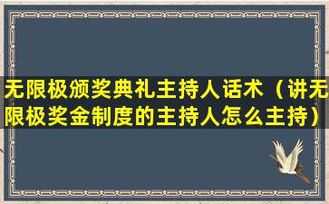 无限极是一家中国的直销公司,其奖金制度是公司激励销售人员的一种方式。如果你是主持人,需要介绍无限极的奖金制度,以下是一些步骤和提示,可以帮助你更好地主持: