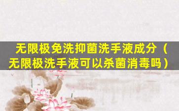 无限极是中国的一家健康产品公司,其产品线涵盖了个人护理、健康食品等多个领域。关于无限极洗手液是否可以杀菌消毒,这需要查看具体产品的成分和说明。