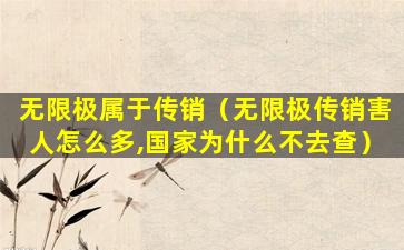 无限极是一家中国的直销公司,主要从事健康产品的销售。在中国,直销是一种合法的商业模式,但必须遵守中国的相关法律法规。中国政府对直销行业有严格的监管,包括但不限于《直销管理条例》和《禁止传销条例》等。