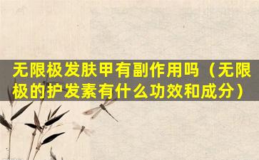 无限极是一家中国的健康产品公司,其产品线包括了多种保健品和日化产品。关于无限极的护发素,由于产品线可能会有更新和变化,具体的成分和功效可能会有所不同。一般来说,护发素的主要功效包括: