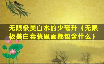 无限极(Infinitus)是一家中国的健康产品公司,隶属于李锦记健康产品集团。该公司提供多种健康和美容产品,包括护肤品。关于“无限极美白水”的容量,由于产品线可能会有更新和变化,具体的容量信息需要查看最新的产品包装或官方信息。