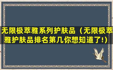 如果你是在询问无限极的萃雅系列护肤品在市场上的排名,那么这个信息可能需要通过市场调研报告或者消费者评价来获取。通常,这样的排名会受到多种因素的影响,包括产品的销量、用户评价、专业评测等。