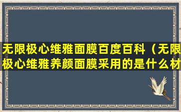截至我的知识更新日期(2023年),关于“无限极心维雅面膜”在百度百科上的具体信息,我无法提供实时的数据或内容。百度百科是一个中文的网络百科全书,用户可以在上面查找各种主题的信息。如果您想了解“无限极心维雅面膜”的相关信息,建议您直接访问百度百科网站,并使用搜索功能查找该产品。