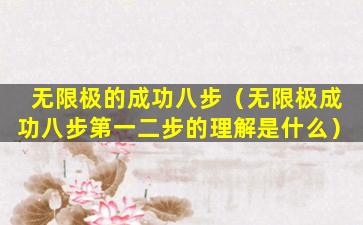 无限极(Infinitus)是一家中国的直销公司,主要销售健康产品。关于“无限极的成功八步”,这可能是指该公司在直销业务中推广的一种销售策略或方法论。由于我无法访问最新的数据和信息,我无法提供确切的“成功八步”内容。