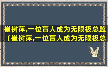 关于“崔树萍,一位盲人成为无限极总监”的故事,目前没有可靠的信息来源证实这一事件的真实性。无限极是一家知名的健康产品公司,其管理层的信息通常是公开透明的。如果有关崔树萍的故事是基于真实事件,那么应该有官方的新闻报道或者公司的公告来证实。