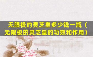 无限极(Infinitus)是一家中国的保健品公司,其产品线包括多种健康食品和营养补充品。灵芝皇可能是该公司的一款含有灵芝成分的产品,但具体的产品名称和价格可能会因地区和销售渠道的不同而有所差异。