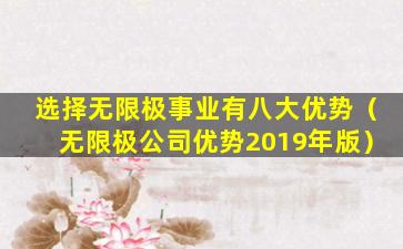 无限极(Infinitus)是一家中国的直销公司,主要销售健康产品。关于“选择无限极事业的八大优势”,这些优势通常是由公司或其销售代表提出的,旨在吸引人们加入其销售网络。以下是一些可能被提到的优势,但请注意,这些信息可能需要通过官方渠道或独立第三方进行验证:
