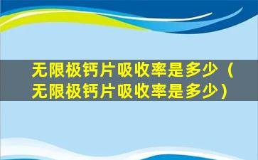 关于无限极钙片的具体吸收率,需要查看该产品的科学研究数据或官方说明。通常,这些信息会在产品包装或官方网站上提供。如果您需要了解无限极钙片的具体吸收率,建议直接咨询无限极公司或查看其官方发布的产品信息。