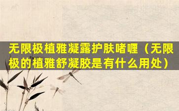 无限极(Infinitus)是一家中国的健康产品公司,其产品线涵盖了个人护理、健康食品等多个领域。植雅舒凝胶是无限极的一款个人护理产品,通常被宣传为具有舒缓和保湿的功效。