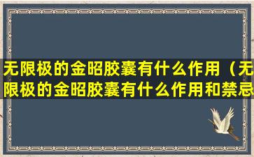 无限极(Infinitus)是一家中国的保健品公司,其产品包括各种营养补充品和健康食品。金昭胶囊是无限极的一款产品,通常被宣传为有助于改善身体健康和增强免疫力。关于金昭胶囊的具体成分、作用、禁忌和副作用,需要查阅该产品的官方说明书或咨询专业医疗人员。