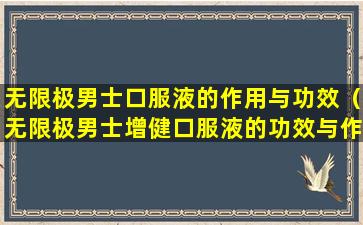 由于我无法访问最新的数据和产品信息,以上信息可能不是最新的。如果您想了解无限极男士口服液的具体成分、作用和功效,建议直接查阅该产品的官方说明或咨询专业医疗人员。