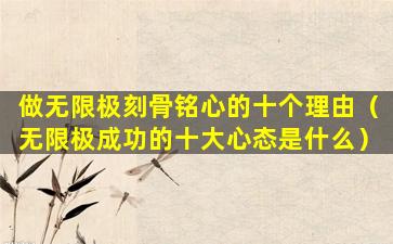 请注意,这些心态和原则是普遍适用于许多成功人士和企业的,并不特指无限极。如果你想要了解无限极具体的成功理念,建议直接咨询无限极公司或其官方资料。同时,由于直销行业存在争议,建议在参与之前进行充分的了解和考虑。