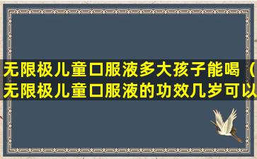 无限极儿童口服液是一种针对儿童设计的保健品,通常用于增强儿童的免疫力和促进生长发育。关于多大孩子能喝,这通常会在产品的说明书或者包装上有明确的建议。一般来说,儿童口服液会根据儿童的年龄段来推荐使用,比如适合2岁以上的儿童等。