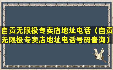 无限极是一家中国的直销公司,主要销售健康食品、个人护理品和家居用品。如果您想了解自贡市无限极专卖店的地址和电话号码,建议您可以通过以下几种方式获取信息: