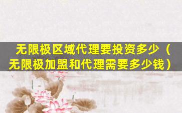 由于无限极的政策和市场情况可能会有所变化,具体的代理条件和投资金额需要直接咨询无限极公司或其官方渠道获取最新信息。建议在做出投资决定之前,详细了解公司的代理政策、市场前景以及自身的财务状况,并考虑咨询专业人士的意见。