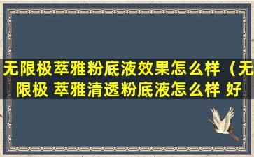 由于个人肤质、偏好和使用习惯的不同,不同用户对同一款产品的评价可能会有很大差异。因此,如果您想了解无限极萃雅粉底液的具体效果,建议查看产品在电商平台上的用户评价、美妆博主的试用报告或者咨询专业的美妆顾问。同时,您也可以考虑购买小样或试用装进行亲自试用,以判断产品是否符合您的需求。