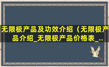 无限极(Infinitus)是一家中国的健康产品公司,隶属于香港李锦记集团。无限极提供多种健康产品,包括保健食品、个人护理产品、家居护理产品等。以下是一些无限极产品的价格和功效介绍,但请注意,具体价格和产品线可能会随时间和地区而变化,建议直接咨询无限极官方或授权经销商获取最新信息。