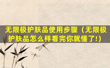请注意,这只是一个基本的护肤步骤指南,具体使用顺序和产品选择应根据个人皮肤类型和所使用的产品说明来调整。无限极的护肤品可能有自己的使用建议,因此在使用前最好阅读产品包装上的说明或咨询专业人士。