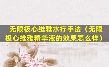 "无限极心维雅水疗手法"可能是指无限极(Infinitus)品牌下的一款护肤产品或护肤程序。无限极是一家中国的直销公司,专注于健康和美容产品。心维雅可能是该品牌的一个系列,专注于提供水疗般的护肤体验。