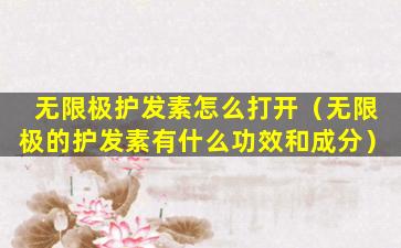 如果你手头的无限极护发素瓶盖或瓶口设计与上述描述不同,请参考产品包装上的使用说明或联系无限极客服获取具体的打开方法。