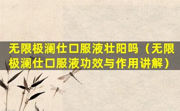 无限极澜仕口服液是无限极公司生产的一款产品,其官方宣传通常会强调产品的保健功能,但具体效果因人而异。在中国,任何声称具有特定医疗效果的产品,包括壮阳效果,都需要经过国家食品药品监督管理局的批准,并且必须有相应的临床试验数据支持。